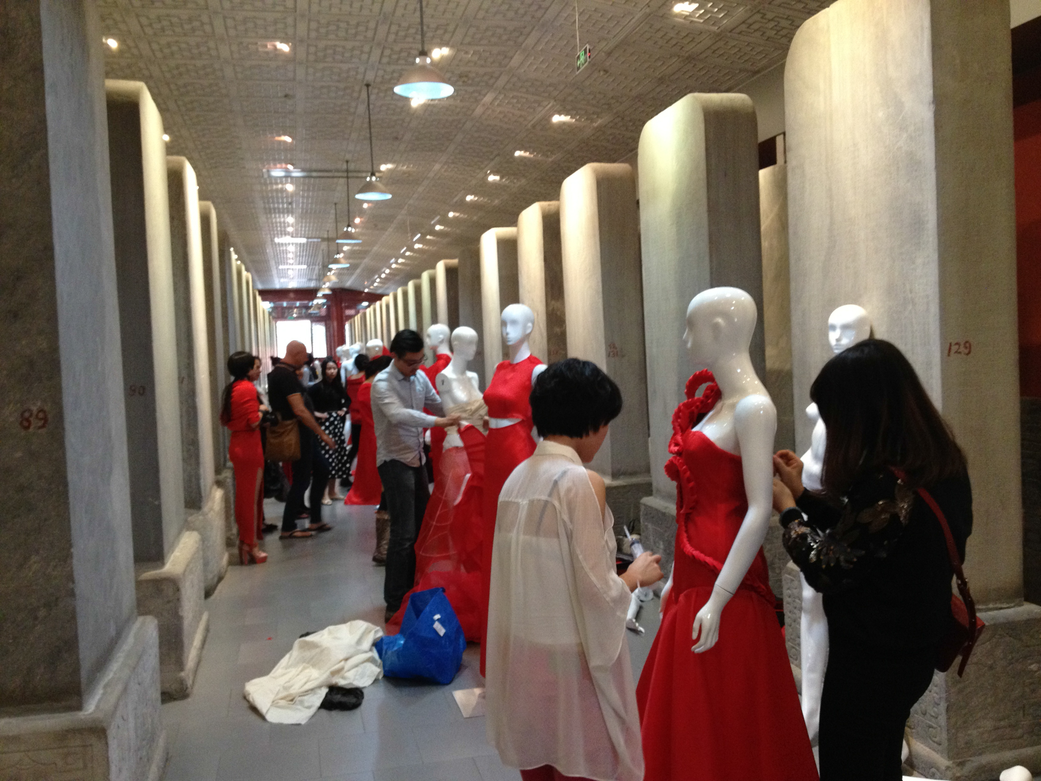 Preparations Beijing design week Alexander Van Slobbe coached 20 students of the Beijing Institute of Fashion Technology (BIFT) and the Central Academy of Fine Arts (CAFA) in designing dresses. Each student had to design a dress with a red chintz cloth within 10 days. Theme: red dress, red carpet, China red.